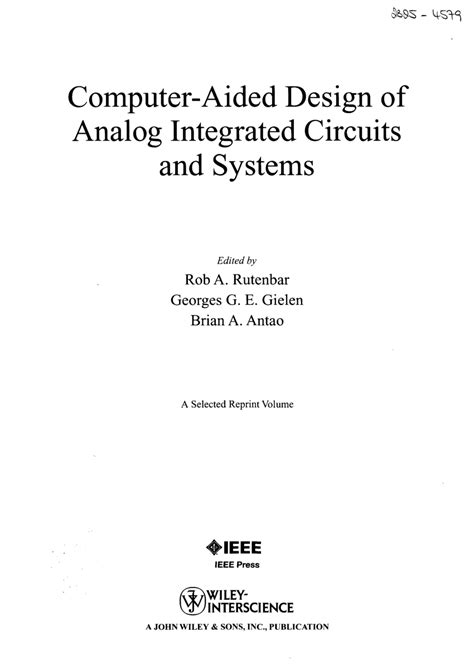 Read Online Computer-Aided Design of Analog Integrated Circuits and Systems Doc online is a convenient and frugal way to read Computer-Aided Design of Analog Integrated Circuits and Systems you love right from the comfort of your own home. Yes, there sites where you can get Doc "for free" but the ones listed below are clean from viruses and completely legal to use.